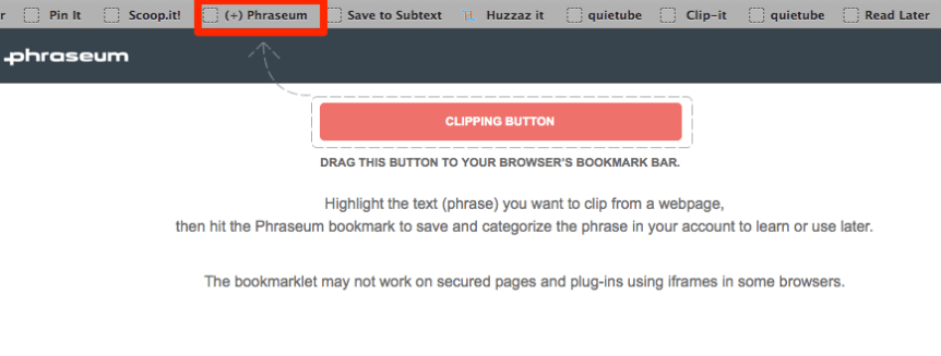 Phraseum is a browser-based tool which can be activated from your browser toolbar. Simply create an account and then drag the ‘Clipping button’ bookmarklet to your favourites bar on your browser.