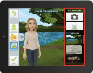 A couple of years back I wrote about a really nice web based tool called Xtranormal and since then I’ve heard from so many teachers saying how useful their students have found it, so I was delighted yesterday to find that the same makes had now produced a free mobile / tablet app called Tellagami. The app runs on a mobile device and allows users to add animated speaking characters to a selection of backgrounds or to the users’ own images. You can then either use text to speech to write a script for the character, or you can record your own voice and the app will lip-synch you text to the character. This is very quick and easy to do. Here’s how.