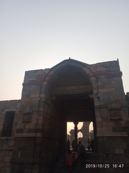 Alai Darwaza- is the main gateway from the southern side of the Quwat-ul Islam mosque, that was actually constructed by Alauddin Khilji in 1311 CE. This doned gateway is decorated with red sandstone and white marble . It has jharokhas, latticed stone screens as well as inscriptions in Naqsh style of calligraphy. It too reflects Turkish architecture.