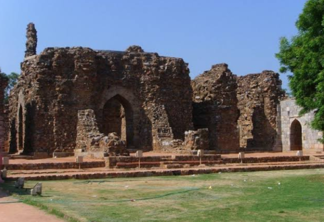 Quwat-ul Islam Mosque- the construction of the mosque was done in 1199CE by destroying the 27 Hindu and Jain temples, that stood erect prior to the construction of the same. The mosque wouldn’t have had accommodated more than 2000 people, though it was the largest mosque of Delhi in the 12th century. The original dimensions of the mosque was 43m×33 m, while the prayer hall measures 45m×12m. Also, the pillars inside the mosque are those of the demolished temples, so one can easily locate the figures of lotus, bell, female figurines, kalash etc. The mosque is raised on a paved courtyard measuring 43m×32m, surrounded by pillared cloisters. 3p years later, this mosque was enlarged by Alauddin Khilji.