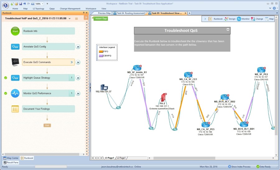 NetBrain is an adaptive network automation platform. It uses a single-pane-of-glass that shows all network data through mapping and visualization. The software also comes with a powerful search engine that allows you to look through all your network elements.