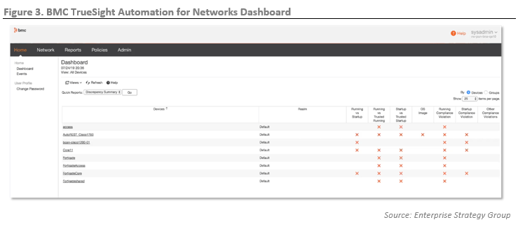 Truesight formerly known as BladeLogic, is now part of the BMC product portfolio. Truesight is an APM with AIOps (Artificial Intelligence Operations) capabilities. It is designed to improve the performance and security of hybrid-cloud environments at a cost-efficient price. TrueSight provides scalable and automated network configuration management capabilities. The software gives full control of the entire configuration across the network, from systems, routers, and firewalls. It can also be programmed to automatically keep track of changes in configuration and apply rollback in case of failure.