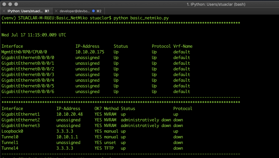 Netmiko is an open-source Python library based on the Paramiko SSH library. It allows easier management and connection of network devices through SSH. Netmiko improves the library of Paramiko by including support to a wide range of networking vendors and platforms, such as Arista EOS, Cisco ASA, HP Comware7, Juniper Junos, Linux, and more. The tool simplifies and automates the logging to a network device through SSH and executes commands.