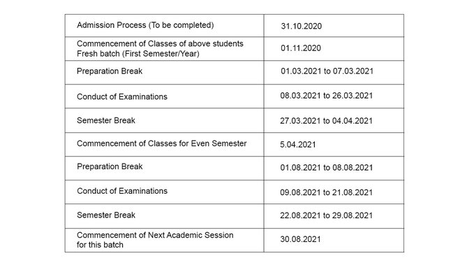 Union Education Minister, Dr Ramesh Pokhriyal Nishank took to his official Twitter handle and made the important announcement. In his tweet, Dr Ramesh Pokhriyal Nishank said, ‘In view of the COVID-19 pandemic, the Commission has accepted the Report of the Committee and approved the @ugc_india Guidelines on Academic Calendar for the First Year of Under-Graduate and Post-Graduate Students of the Universities for the Session 2020-21.’ He also shared the suggested UGC new academic calendar 2020.