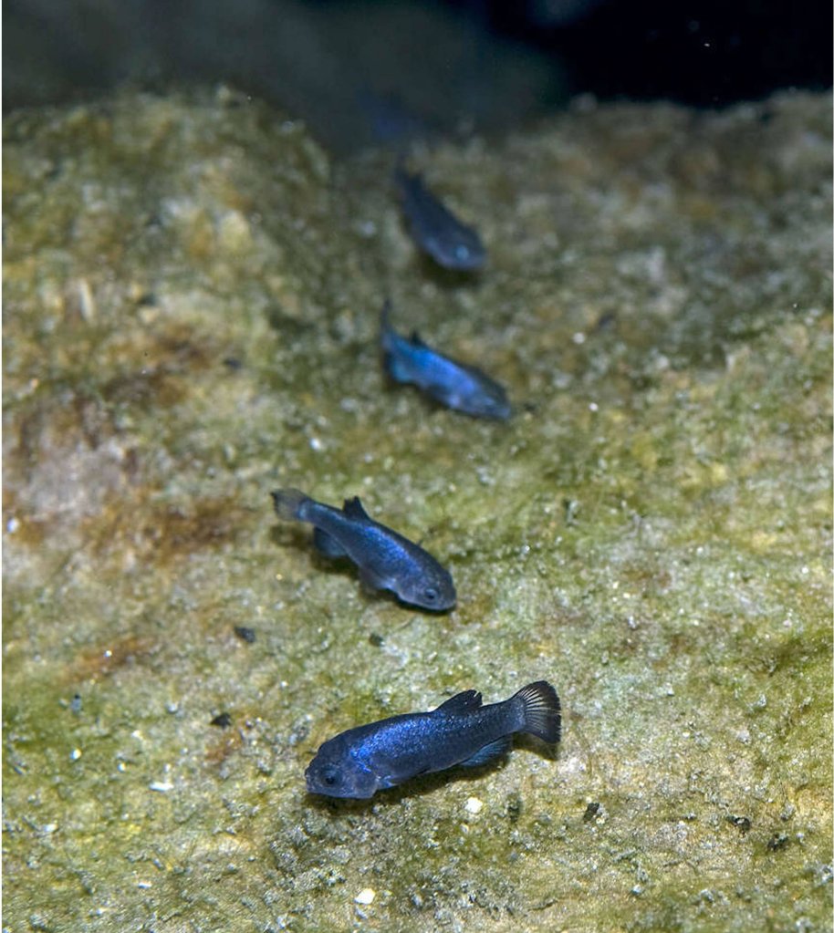Pupfish are small, colorful, knuckle-sized and ray-finned fishes. The most famous amongst them are the Devil’s Hole pupfish. The Devil’s Hole pupfish are bright blue with purple accents whereas, the white sands pupfish has yellow and orange fins. Most of the pupfish are very tiny, some even less than an inch in length.