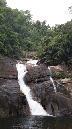 Meenmutty Falls is located 29 km from Kalpetta in Wayanad District in the state of Kerala, India. Meenmutty Waterfalls is the second highest waterfall in Kerala. Meenumutty is a combination of Malayalam words Meen (fish) and Mutty (blocked). Falls can be accessed from Mananthavady – Kuttiady road.