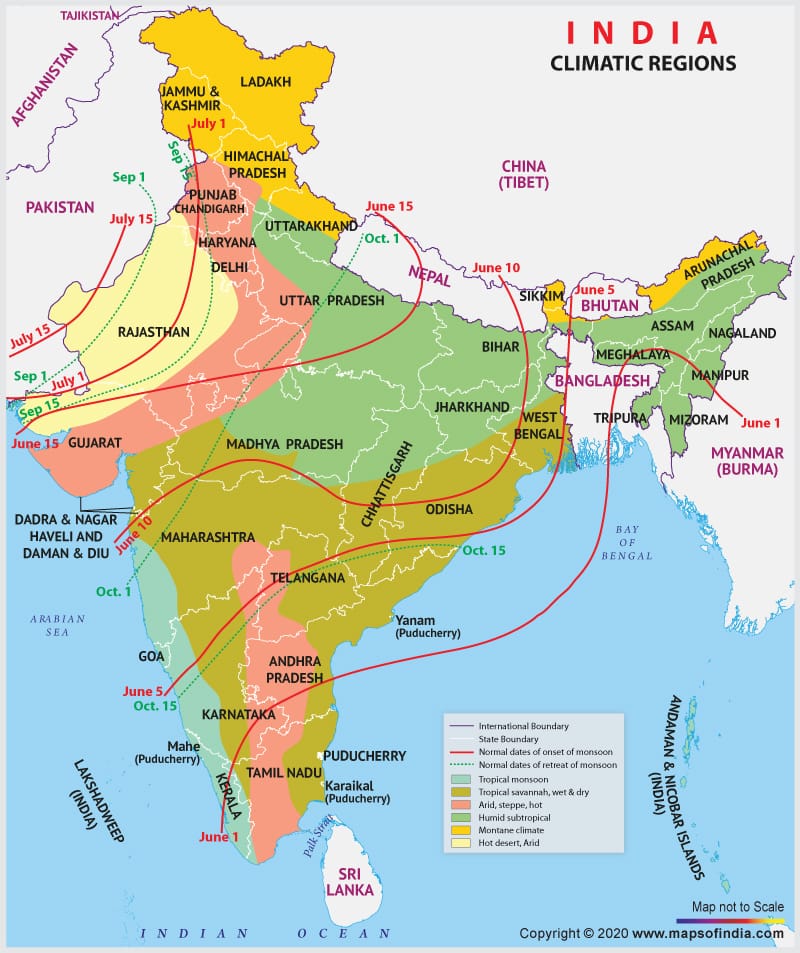 Climatic maps show the distribution of temperature, rainfall, clouds, relative humidity, direction and velocity of winds and other elements of weather.