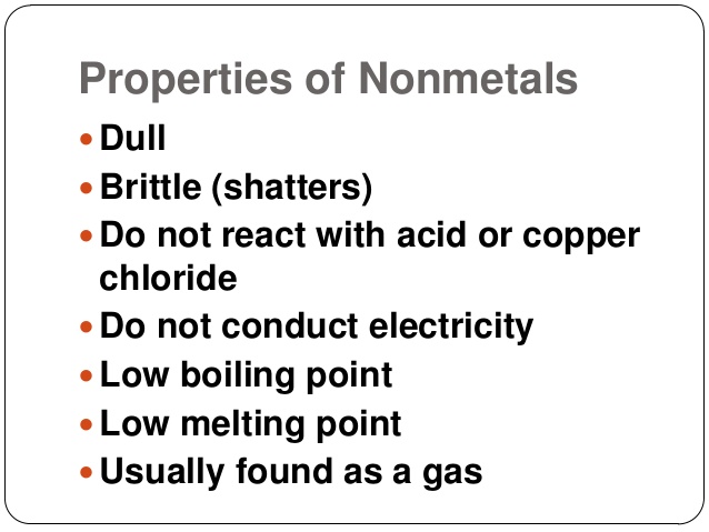 Non-metals have low melting point and boiling point.