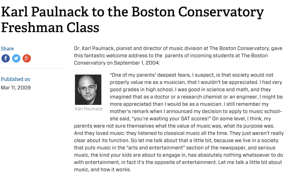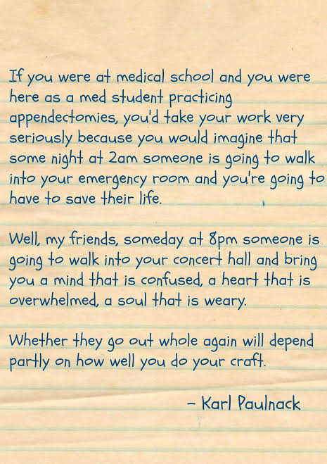 🎵🎼🎵As an advocate for music and the arts, Dr. Paulnack is increasingly in demand as keynote speaker and lecture. His speech “Why Music Matters” ,has been translated into six languages and appeared on nearly 50,000 web pages, in print publications such as the Christian Science Monitor, and in the program books of numerous symphony orchestras and concerts series around the world. In spring 2009, Linda Ronstadt quoted his speech during her official testimony to the United States Congress on behalf of funding for the arts.