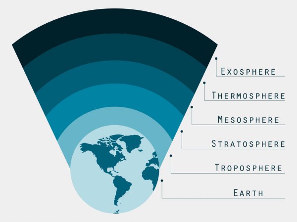 The atmosphere is thick near the earth surface and thins out until it eventually merges with space. The five atmospheric layers are:
