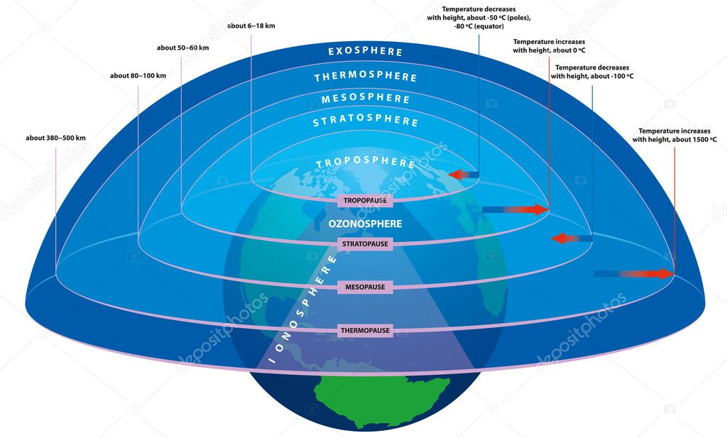 The temperature increases with increase in height in this layer. Large jet planes normally fly here. The upper limit of the stratosphere is called as stratosphere.