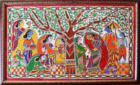 It is a painting that comes under the category of Folk art. This folk art was started for the utility purposes or mostly for ritual kind if things. This Madhubani painting primarily depict the nature and the Hindu mythological figures and the themes are generally associated with Hindu deities, fish, birds, animals, natural objects like the sun, moon and religious plants like Tulsi plant or Banyan tree. Each symbol has different meaning ,like fish symbolizes fertility ,wealth harmony .