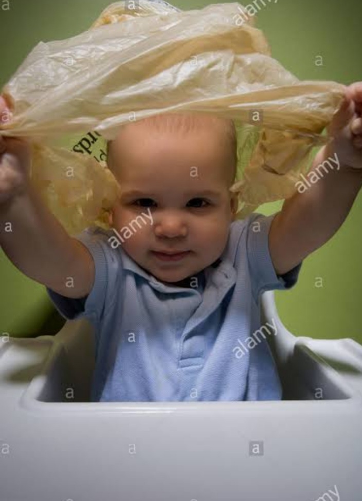 Thin, comfortable plastic bags, especially dry cleaning bags, have the potential to cause suffocation. Because of this about 25 children in the united states suffocate each year due to plastic bags, almost nine- tenth of whom are under the age of one. This had led to voluntary warning lables on some bags posing a hazard to small children.
