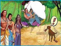 But one day, when Yudhisthar was in her chamber, the dog stole his shoes. Unaware of the fact Arjun entered the chamber of Draupadi seeing no shoes outside and saw his brother Yudhisthir with Draupadi copulating. Arjun was sent to exile as per the condition of Draupadi. Embarrassed Draupadi cursed dogs by saying: “All the world will see you copulate in public, stripped of all shame.”