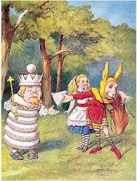 Chess wasn’t just one of the themes in Carroll’s story, indeed, it was the ground for the novel’s structure. The game of chess in real world is ‘logical’ while in looking glass world it can be called as ‘maddening game of chess’. Also as an inverted image created by the mirror, this indoor game is displayed as an outer giant field of chess. The pieces are definitely running and moving under the implied rules, but the pattern is not applied evenly. This game sets the deterministic way of life. Both life and chess are, more or less, synonymous in almost every aspect.