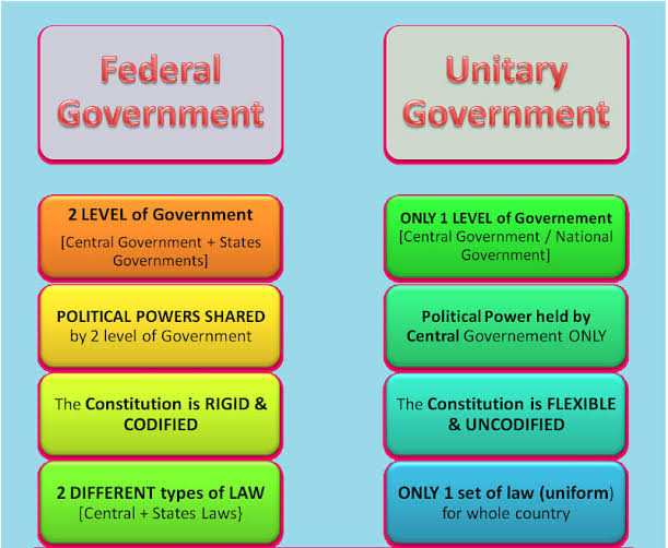 In a Unitary Form of government, all the authority and power is vested in a single centre, whereas in a federal form of government authority and power is distributed between centre and the constituent units. Even in a Unitary Form of Government,there might be a lot of decentralisation of authority,but we cannot claim it as a federal system.
