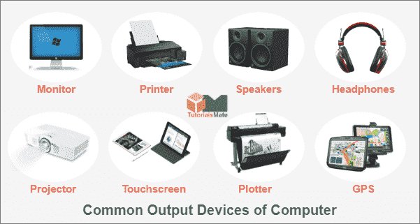 Output devices show the processed data – information – thr result of processing. The devices are normally a monitor and printers.