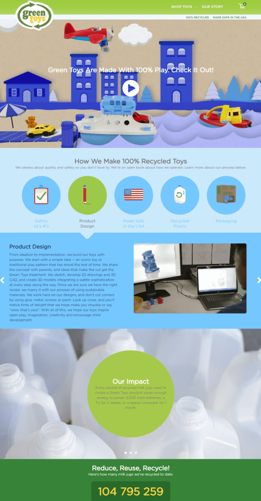 The company assumes that to raise a happy and healthy child, you should provide a healthy environment. This makes everybody think about our earth and take care of it. Green Toys are safe both for kids and the environment as they are made from 100% recyclable materials.