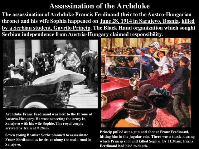 🌟The climax to the events in the Balkans occurred in Sarajevo in Bosnia. 🌟On 28 June 1914, Archdale Franz Ferdinand was assassinated by Principe, a Bosnian Serb. Austria saw in this an opportunity to eliminate Serbia as an independent state.