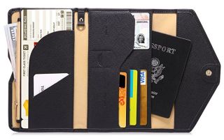 A passport wallet filled with cards.A handy wallet is an international traveller’s best friend. It has so much room you could choose to forgo your handbag for this wallet.Note that it should be spacious enough to hold your currency, passport, credit cards, and anything else you need to keep secure and on your person while travelling.It should be made of a material which is to clean.