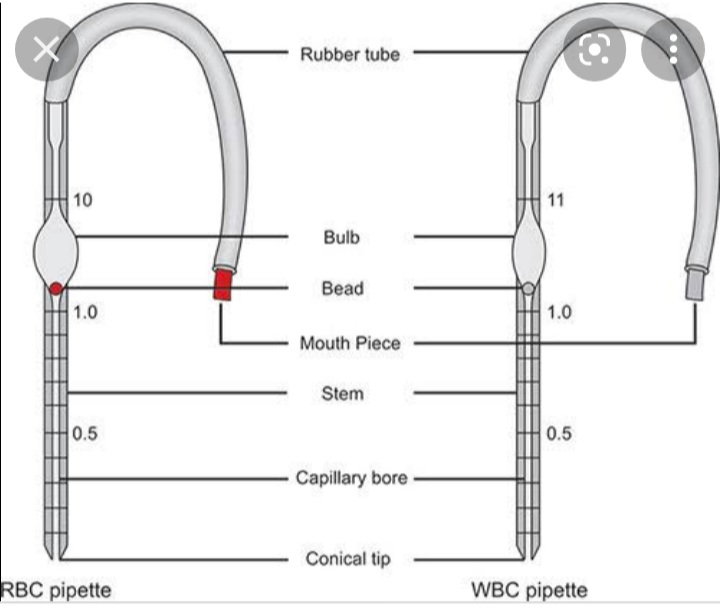 RBCs and WBCs in blood cannot be counted as such. The blood has to be dilute in specific isotonic solutions. RBC, diluting fluid is called Hayem’s solution. For WBC counting Turk’s solution or Toisson solution can be used.
