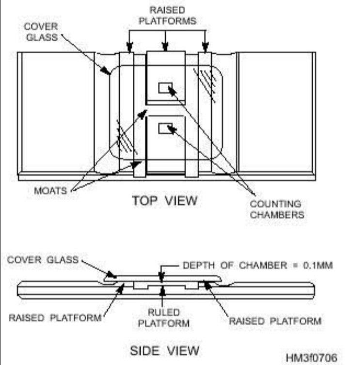 A haemocytometer consists of a counting chamber, a coverglass for the counting chamber and diluting pipettes. Many types of counting chambers are available. Improved Neubauer and Fauchs Rosenthal are the two most commonly used counting chambers in laboratories.