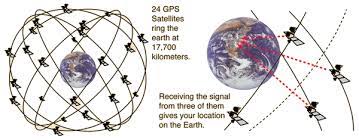 The Global Positioning System (GPS) consists of 24 satellites orbiting the earth. A GPS receiver uses the position of four of these satellites to locate itself. One to correct the time on the receiver, and three to locate its position. A signal is sent to the receiver from the first satellite that contains the satellites location and the signal’s time of departure. The receiver then multiplies the signal’s travel time by the speed of light to calculate its distance from the satellite. With one satellite the receiver knows that it’s located o a sphere around that satellite with a radius equal to the calculated distance. So, it does the same calculation with a second satellite. The intersection of these two spheres narrows the location to the circumference of a circle. Then with a third satellite, the receiver can reduce the location to a single point. Since signals are travelling at the speed of light, being off by even a millisecond means an error off about a million feet, or 300 kilometres. But with atomic accuracy, the receiver can locate itself to about 3 feet. Global Positioning System (GPS) satellites fly in medium earth orbit (MEO- Medium Earth Orbit) at an altitude of approximately 20,200 kilometres from ground.