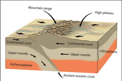 The Mariana Trench is located at a convergent plate boundary. Here two converging plates of oceanic lithosphere collide with one another. At this collision point, one of the plates descends into the mantle. At the line of contact between the two plates, the downward flexure forms a trough known as an ocean trench. An example of an ocean trench is shown in the diagram. Ocean trenches form some of the deepest locations in Earth’s oceans.