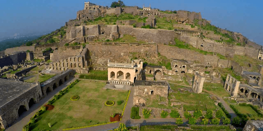 Among the ruins of Golconda Fort lies a history of half a millennium. It remains a thing of beauty despite the destruction it has gone through. It is 3 miles in circumference, and the granite hill that it is built on is 390 feet high. The glorious Golkonda fort in Hyderabad has cannons, gateways, majestic halls, drawbridges, and more. It was first built in 1143 by a Kakatiya king, but the Qutub Shahi Dynasty and Bahmani Sultans fortified it between the 14th and 17th centuries. The Qutub Shahi kings ruled the area in the 16th and 17th centuries. One of the most pivotal rulers in the Deccan Plateau, the Qutub Shahi Dynasty at its peak ruled Andhra Pradesh, Telangana, parts of Tamil Nadu and half of Karnataka. As the magnificent Golconda fort was built, it was the capital of the dynasty from 1518 to 1591. The Muslim sultanate was then overthrown by the Mughal emperor Aurangzeb in 1687. He destroyed the fort but the mosques and Qutub Shahi tombs remained safe enough to be visited as a tourist place.