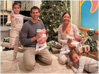 Emma Grede with her husband Jens Grede and four children, Grey, Lola, and twins Lake and Rafferty