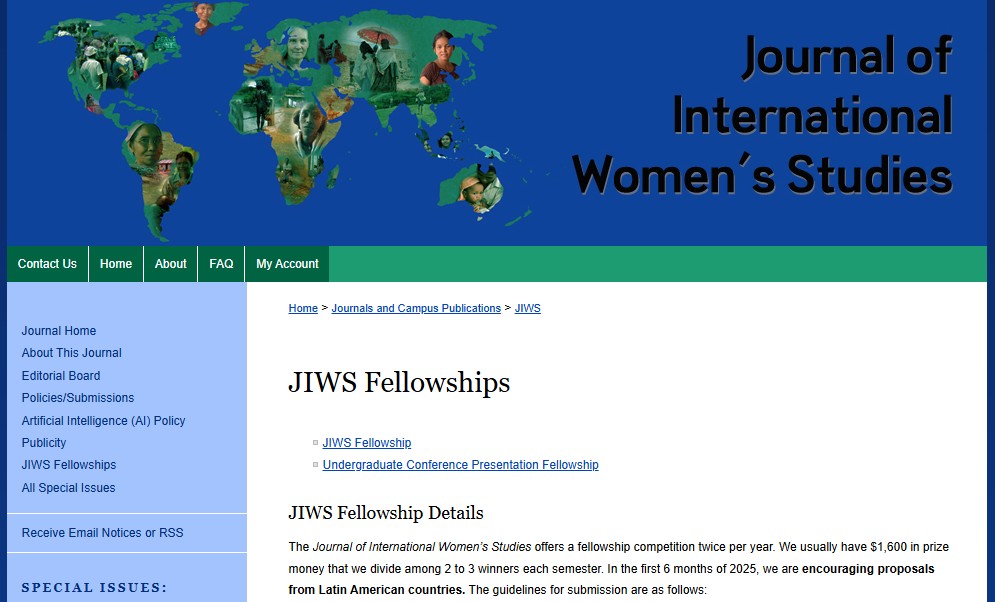 The Journal of International Women’s Studies (JIWS) offers a prestigious fellowship competition twice per year, aimed at supporting projects that align closely with its mission of advancing scholarship and awareness in the field of women’s studies from a global and intersectional perspective. This fellowship is designed to empower scholars, activists, and creators who are working on innovative and impactful projects that contribute meaningfully to gender justice and women’s rights worldwide.
