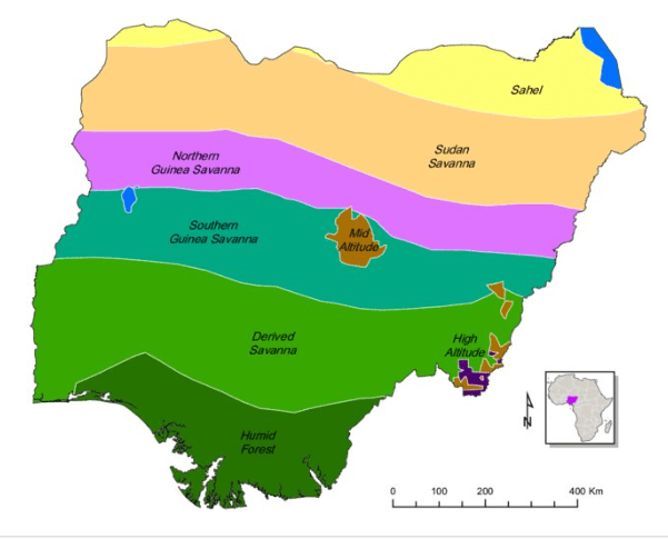 Figure 1: Map of Nigeria with Agro-climatic Zones