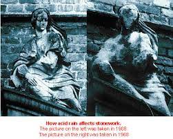Rain is never just composed of water. Chemicals and particulates in the atmosphere can be found in every drop, and some compounds like carbon dioxide make even regular rainfall slightly acidic. But this pales in comparison to the powerful acids produced when water interacts with oxides of nitrogen or sulfur dioxide. On the pH scale which measures acidity, each whole number is ten times more acidic than the one above it. And where normal rain has a pH of roughly 5.4, rain that’s interacted with these gases(carbon dioxide, sulfur dioxide or oxides of nitrogen) can rank as low as 3.7. Oxides of nitrogen and sulfur dioxide can appear naturally as a short-lived byproduct of volcanic eruptions or lightening strikes. But power plants, refineries and vehicles that use fossil fuels consistently pump large quantities of these harmful gases into the air. These dangerous gases travel with the wind spreading hundreds of kilometers from the pollution’s source. Acting like roaming clouds of destruction, their presence dramatically increases the acidity of local precipitation, creating acid rain, acid snow and acid fog. These all acidify lakes and streams, kill crops and forests, and damage soil to inhibit future growth on it. Overtime, acid rain can even corrode human structures made up of stone or metal.