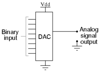 -A Digital to Analog Converter, or DAC, is an electronic device that converts a digital code to an analog signal such as a voltage, current, or electric charge.