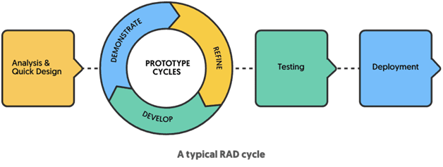 RAD should be used when there is a need to create a system that can be required in 2-3 months of time. It should be used if there‟s high availability of designers for modeling and the budget is high enough to afford their cost enables a development team to create a ―fully functional system within very short time periods (e.g., 60 to 90 days).