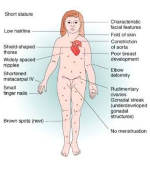 Such a disorder is caused due to the absence of one of the X chromosomes, i.e., 45 with X0. Such females are sterile as ovaries are rudimentary besides other features including lack of other secondary sexual characters.