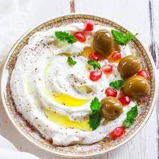 The labneh is a creamier version of yogurt with the water drained out. You get various flavors and is consumed very commonly by all. Olives are a basic garnish.