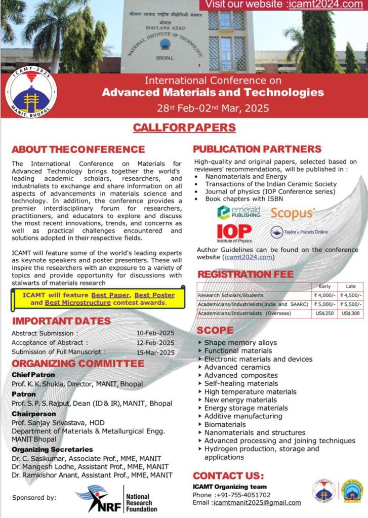 Venue: Maulana Azad National Institute of Technology (MANIT), Bhopal, India