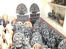 Mansa pottery of west bengal represents the snake goddess and is a quaint, double curved pot with a face painted on it. Similarly, the Dakshinirai pots, found in the Sunderbans area, are round pots with an edging running along the mouth signifying a crown and worshipped as the god who protects people against tigers. Such articles are of interest to the tourist and though not readily available outside Bengal, one finds stray pieces at the emporia in the major cities of India.