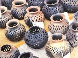 Delhi is famous for its characteristic ‘Blue’ pottery. It has a very old tradition, which is very distinctive. This particular art form has been named as blue pottery because the eye-catching Persian blue dye is used to color the clay. Blue pottery is glazed and high-fired which makes it tougher than most of the others.Delhi pottery Known as the “lyric of handicrafts”, pottery has always supplied writers and poets with the metaphors they have needed.It was probably the Pathan potters from Afghanistan who introduced the glazing techniques to the Mughal court in India.Today, Khurja, an old town about 80 kilometers from Delhi, is full of Muslim potters, engaged in this ancient craft. They use inky blue color known as Jaipur blue as background for floral designs. They also make tiles and do pottery cutwork.