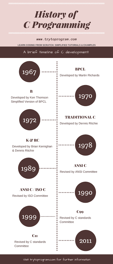 Over time, C began to be used in personal computers for developing software applications and other purposes. The first change (even if only a little) came when the American National Standards Institute (ANSI) formed a committee in 1983 to standardize C. After a review of the language, they modified it a little so that it was also compatible with other programs that preceded C. So the new ANSI standard came into being in 1989, and is known as ANSI C or C89. The International Organization for Standardization (ISO) has also contributed to the standardization of C. Over time, C has evolved as it has added some significant features like memory management, functions, classes and libraries to its rich feature set. C is being used in some of the biggest and most prominent projects and products in the world. C has also influenced the development of numerous languages such as AMPL, AWK, csh, C++, C–, C#, Objective-C, Bit C, D, Go, Java, JavaScript, Julia, Limbo, LPC, Perl, PHP, Pike, Processing, Python, Rust, Seed7, Vala and Verilog. USES TODAY : According to Toptal, UNIX operating systems are written in C and most of Linux is also in C. Also databases such as Oracle Database, MySQL, MS SQL Server, and PostgresSQL are at least partially written in C. C is the basis of many system kernels. Other programming languages, like Python and Perl, use compilers or interpreters that are written in C. C has changed over the years and is still a common language to use in lower level programs, like kernels. But it is also used for many applications ranging from device drivers to other programming languages’ compilers or interpreters. The language also made way for C++, Objective-C, C#, and many more C-based languages that each have their own speciality.