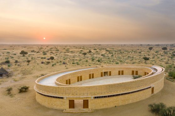 It is a school building. About 40 km from the city of Jaisalmer, there is a popular tourist spot known as Sam Sand Dunes. A few kilometres before this Sam desert, there is a village. This new school is built near this village. What’s special about the school is that not only is it a completely free school, to educate girls from below the poverty line, but the building of this school is also an architecture marvel. Look at this building. Look, at how beautiful it is. It is built in a futuristic-modern style. The building also looks minimalistic. Additionally, the traditional architecture of Rajasthan has also been used in it. To top it all, this is a sustainable building. There are solar panels on the roof of this building. There are no ACs inside. Instead, traditional architecture is used in the building in such a way that the stones used to build it, will keep it cool from the inside. And the design of this building, will help to cool down the interiors. Who built this school? And how? .
