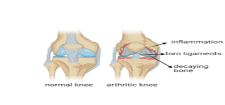 In the case of arthritis, the bones start to wear down, the ligaments can tear, inflammation and swelling can occur, and also lead to internal bleeding (hematoma). There are about 100+ types of arthritis with different causes and symptoms.