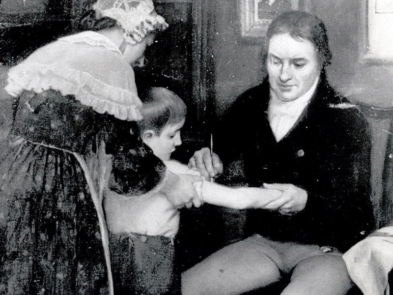 Edward Jenner giving the boy smallpox vaccine.