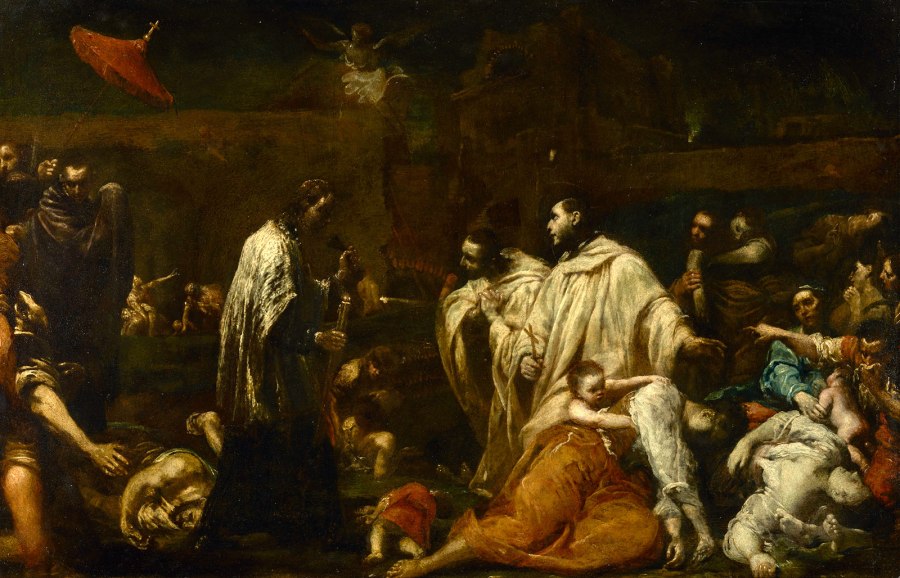 The painting “Blessed Bernard Tolomei Interceding for the Cessation of the Plague in Siena” by the Italian artist Giuseppe Maria Crespi.