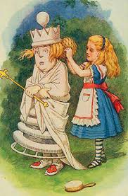 In life we make ‘choices’, in chess we make ‘moves’. In order to attain something valuable in life as to capture the opponent’s castle in chess, initiative has to be taken. Nobody can make decisions for me, I’ll have to play myself, it’s just suggestions that our people may put before us. Here, Alice makes a choice to participate in the game ‘imagining’ her goal where she wants to be in the end. Well, talking about imagination with reference to Victorian era, it significantly brought out a drastic change in society, though previously children along with adults were forced into realism. ‘Imagination’ is quite efficient to presume one’s position in the coming years and then working out to get there can be useful, because life makes it hard to calculate the further possibilities due to lack of information. Alice restrained herself asking the Queens about their arrival, thinking it would be obtrusive, which keeps her away from the information, also we see Alice not able to distinguish between Red Knight and White Knight and actually who’s there to save her declares her ignorance towards information.