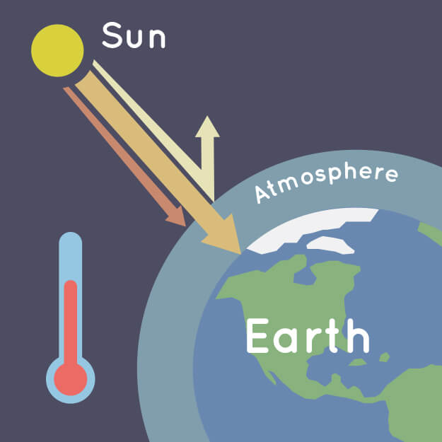 The atmosphere allows most of the visible light from the Sun to pass through and reach Earth’s surface. As Earth’s surface is heated by sunlight, it radiates part of this energy back toward space as infrared radiation. This radiation, unlike visible light, tends to be absorbed by the greenhouse gases in the atmosphere, raising its temperature. The heated atmosphere in turn radiates infrared radiation back toward Earth’s surface.