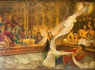Duryodhana felt deeply humiliated and after returning to Hastinapur he narrated this entire scenario to his cunning uncle Shakuni and thus he planned to invite the Pandavas for the Game of Dice. After Dhritarastra permission, Yudhishthira accepted the invitation with his brothers. Shakuni who was the master of the magical dice placed on behalf of Duryodhana whereas on the other side it was Yudhishthira. As the game started Yudhishthira stared to lose everything. First his lost his entire wealth, then his loving brothers, then his own self and finally her Draupadi. When Draupadi was called to the court she refused this proposal and was extremely horrified as well as angry on Yudhishthira. Revengeful Duryodhana ordered Dushana to bring Draupadi vehemently which he did by forcing her and dragging her long hairs to the court. Duryodhana insulted her even more by slapping in his thigh and asking her to sit there. But this was not the end furious Duryodhana ordered Dushana to disrobe Draupadi. Finally, to prevent herself from such grave humiliation Draupadi prayed Lord Krishna to help her and unexpectedly a miracle happened where Dushana keep on unwrapping the layers and parts of her clothes but unable to do so due to exhaustion. Seeing this disheartening scene Dhritarastra was extremely depressed and decided to return Yudhishthira the entire thing which he lost in the game. As Duryodhana started to find everything going against his will he requested for a second chance of Game of Dice in which the Pandavas lost and have to succumb all their wealth, kingdom and have to go for an exile for 13 years and 1 year in incognito.