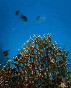 Tides are the regular daily rise and fall of ocean waters. Twice each day in most locations, water rises up over the shore until it reaches its highest level, or high tide. In between, the water recedes from the shore until it reaches its lowest level, or low tide. Tides respond to the gravitational pull of the moon and sun. Gravitational pull has little effect on the solid and inflexible land, but the fluid oceans react strongly. Because the moon is closer, its pull is greater, making it the dominant force in tide formation.