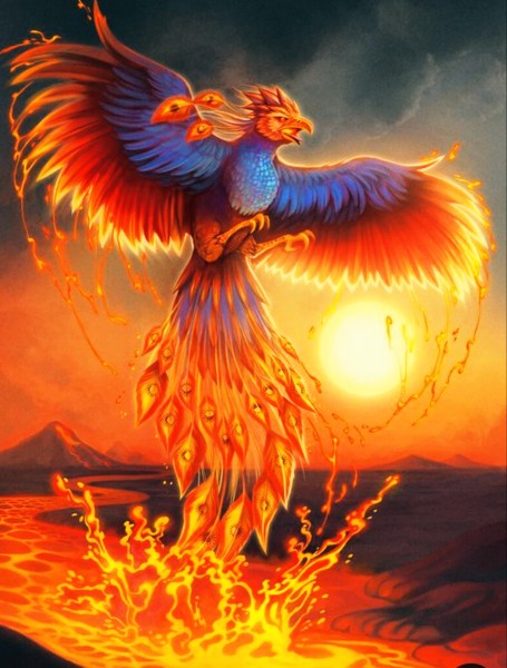 Although the phoenix was generally believed to be colorful and vibrant, sources provide no clear consensus about its coloration. Tacitus says that its color made it stand out from all other birds. Some said that the bird had peacock-like coloring, and Herodotus’s claim of the Phoenix being red and yellow is popular in many versions of the story on record. Ezekiel the Dramatist declared that the phoenix had red legs and striking yellow eyes, but Lactantius said that its eyes were blue like sapphires and that its legs were covered in yellow-gold scales with rose-colored talons.